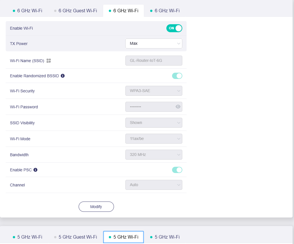 uci set wireless.wifi6g1.ssid='GL-Router-IoT-6G'