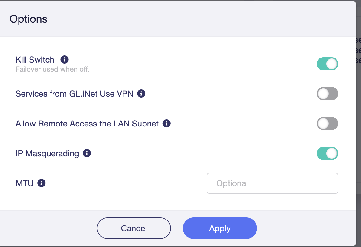 Sure, I don’t know exactly what you are looking for but here’s a screenshot (I was only allowed one). The deal is having the OpenVPN connected on the router means I can’t reach anything on the VPN or the internet. Turning it off and everything works again