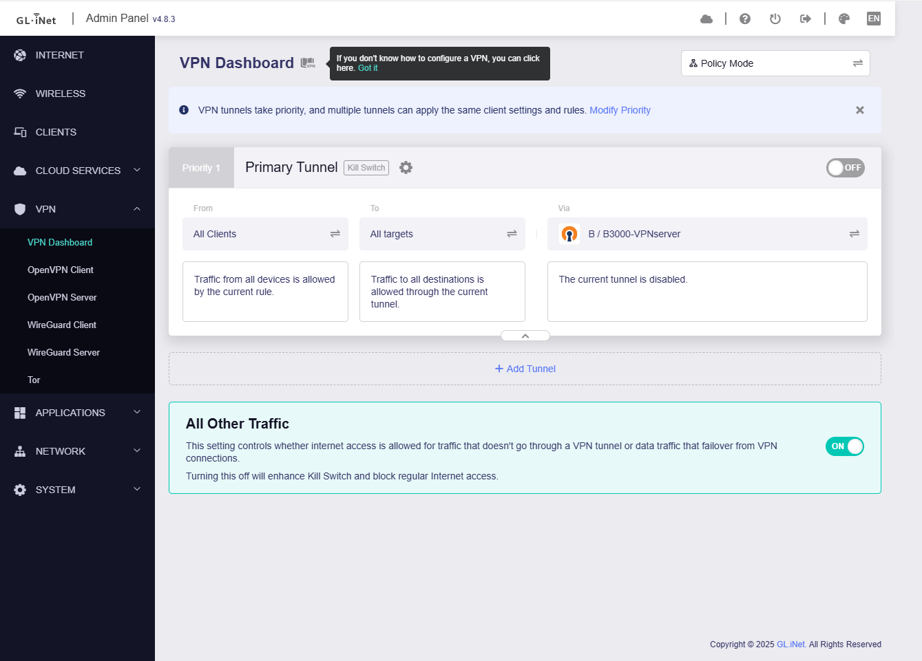 May I know when you enabled the OpenVPN tunnel on router, both VPN traffic and Internet are unavailable to access, right?