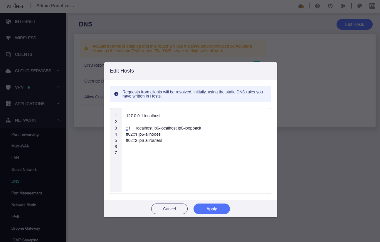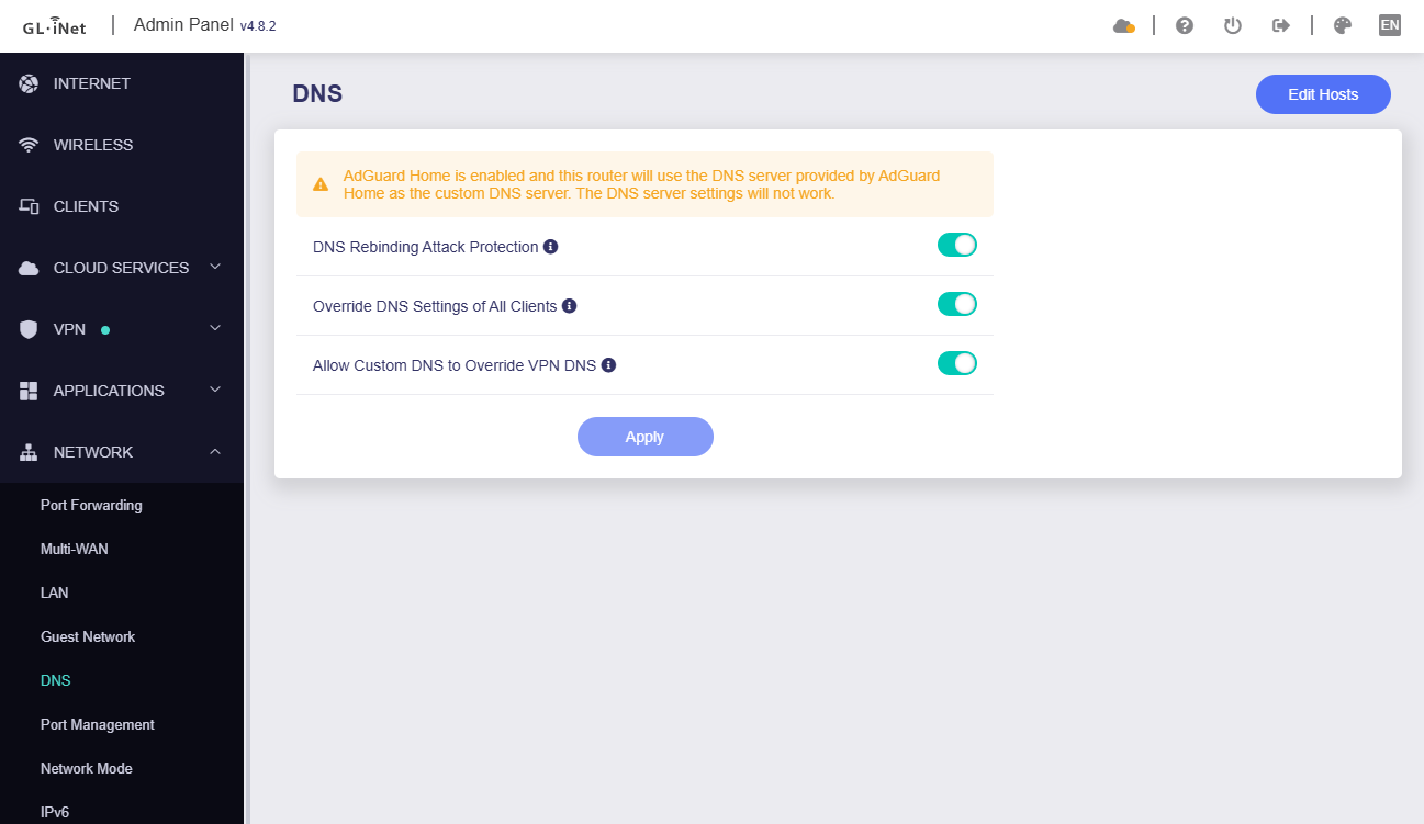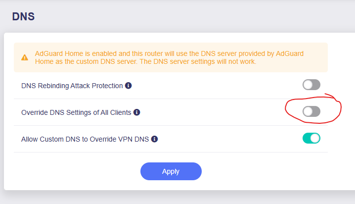 When ADG handles client requests enabled, the DNS server section of the current page cannot be set, but these three DNS options do work/effect.