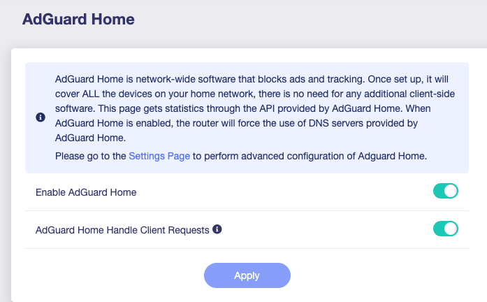 So you get this weird situation where the firmware is programmed to work in a specific way - if AdGuard Home is enabled, lock out DNS settings and set DNS to localhost:5053 (for example). But when you upgrade AGH manually it defaults to 53 and unless you know for sure what the firmware is expecting the port to be, you can’t set it to match.
