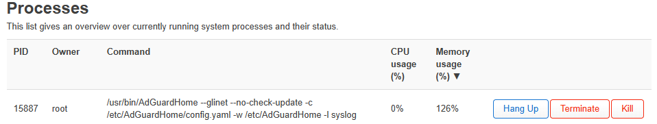 OpenWrt uses BusyBox’s Top utility, and the memory usage shown reflect %VSZ rather than true memory consumption.