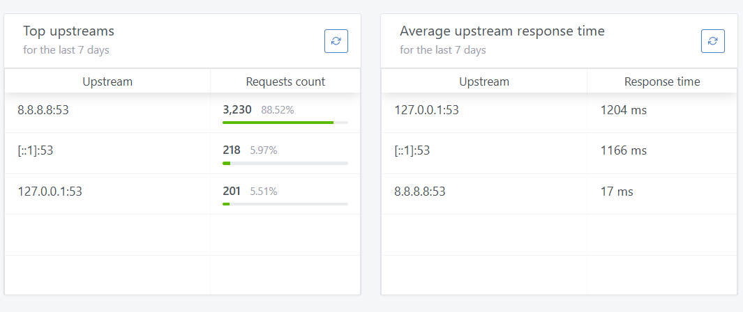 Hi, I have been checking the stats on my AdGuard (Flint 2). My understanding is that the 2 addresses in particular are loopback addresses. Why do they have such a high response time and is it anything to be concerned about?