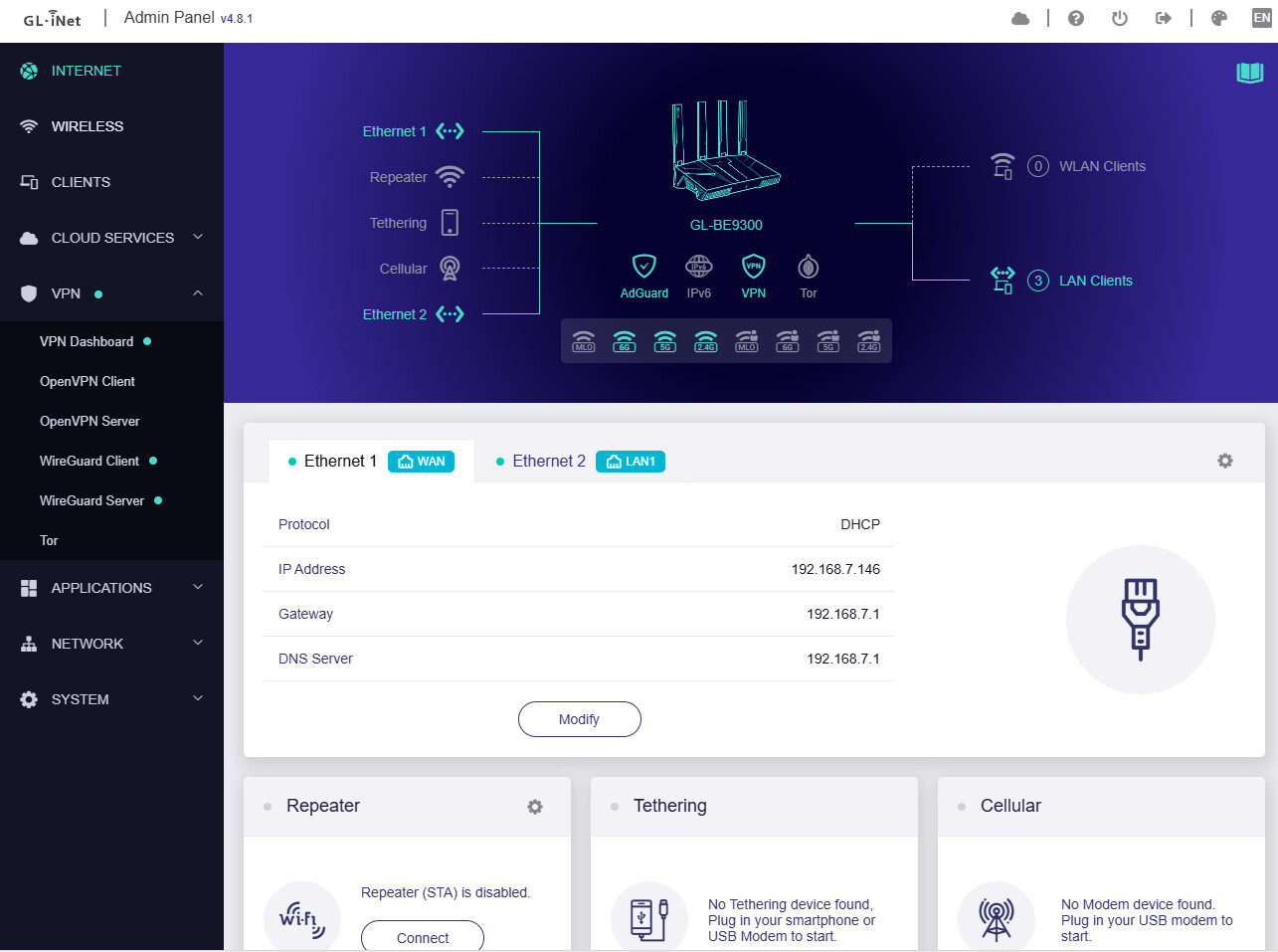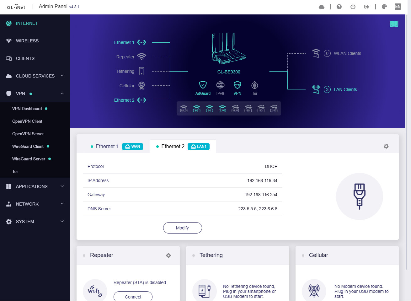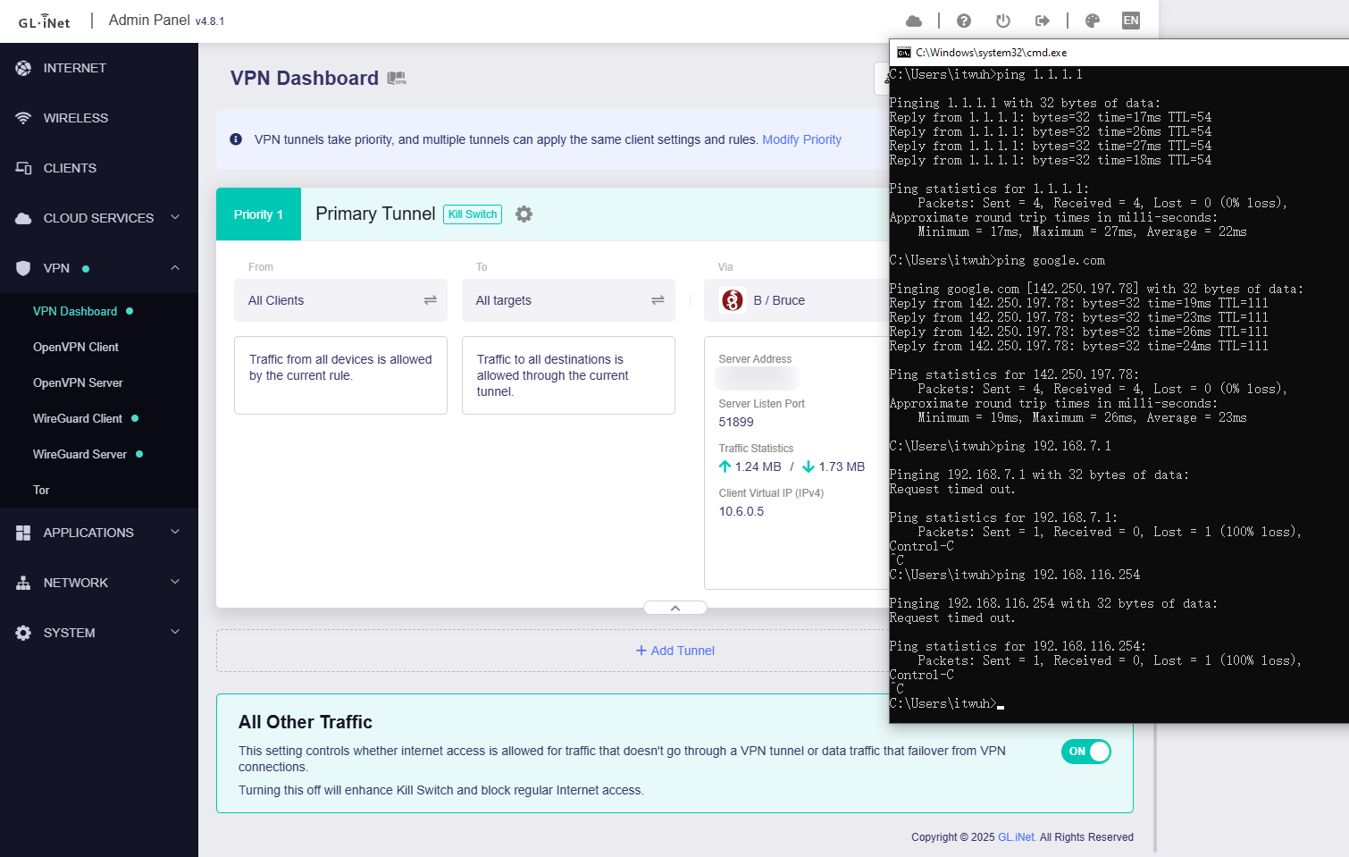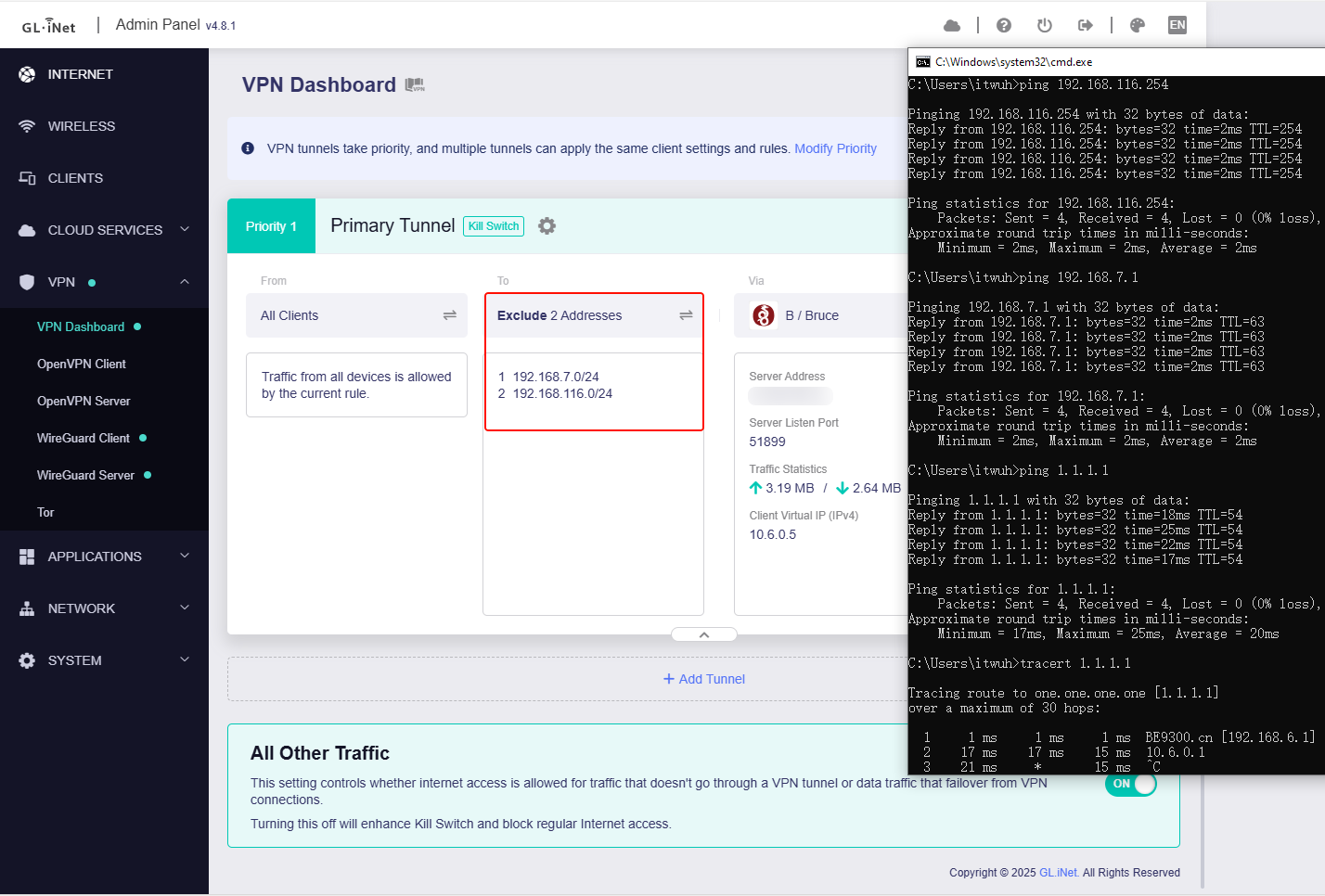 Hello, I have the Beryl AX MT3000 (192.168.8.1), to which I have connected a 5G mobile router (192.168.0.1). How can I allow access to the 5G router when VPN is active? With the previous firmware, it was possible to allow WAN access in the VPN settings.