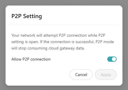 Additionally, if the P2P connection fails to establish, it will automatically fall back to using the cloud gateway relay, which will also consume data traffic.