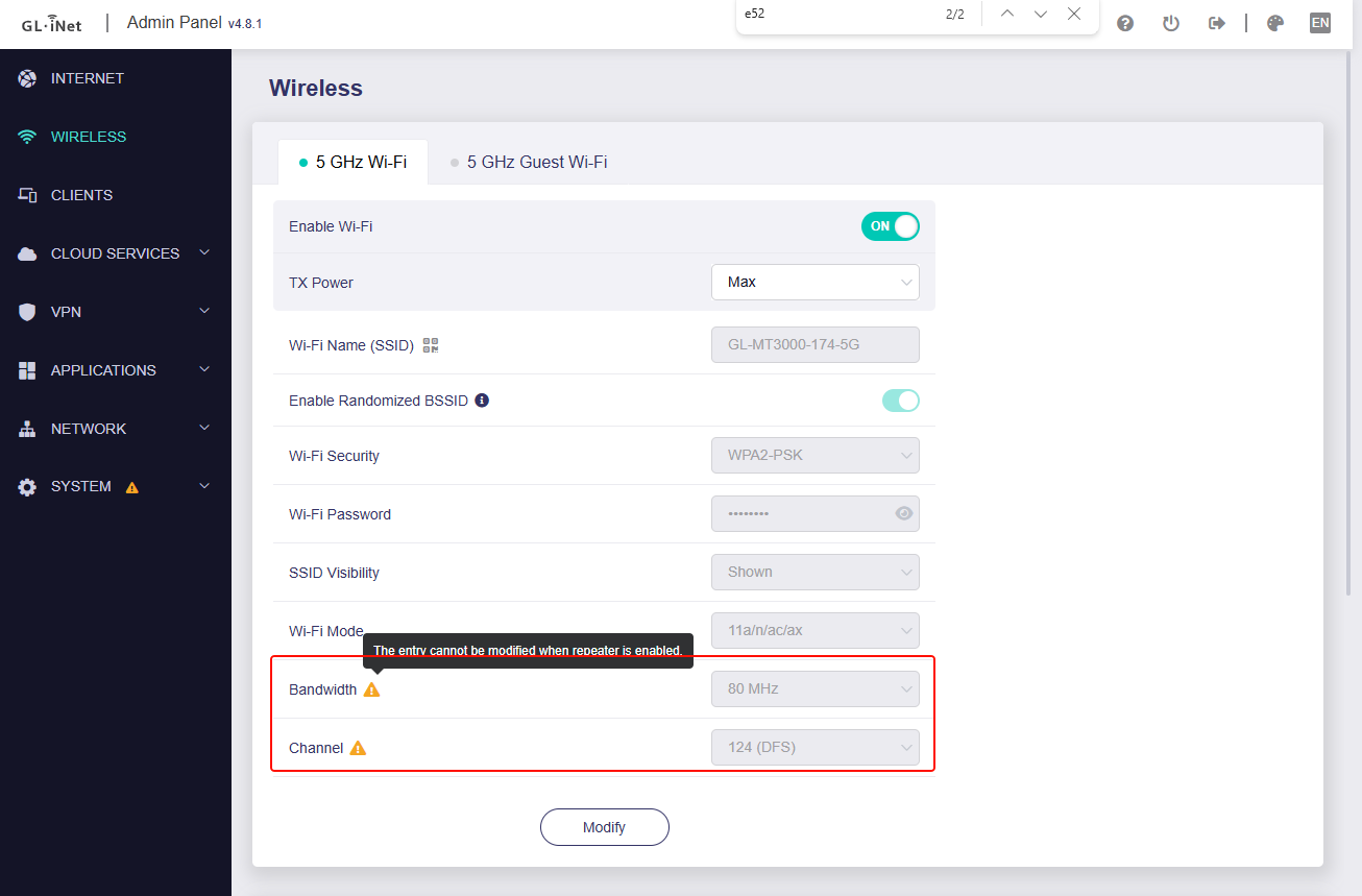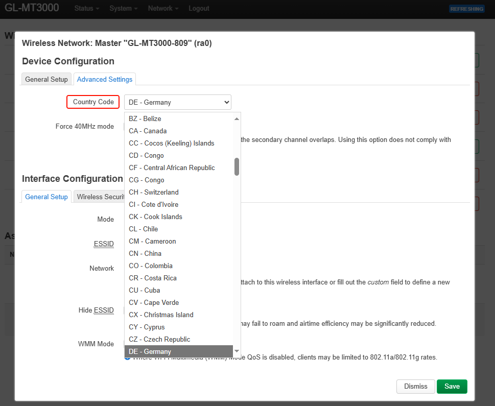 Hi! I am in a country where channel 124 is 100% certainly legally allowed, and the router I connect to is already on that channel. I want to set the mt3000 as repeater, and did not see anywhere any kind of option to specify a country or fhannel, thus my question.