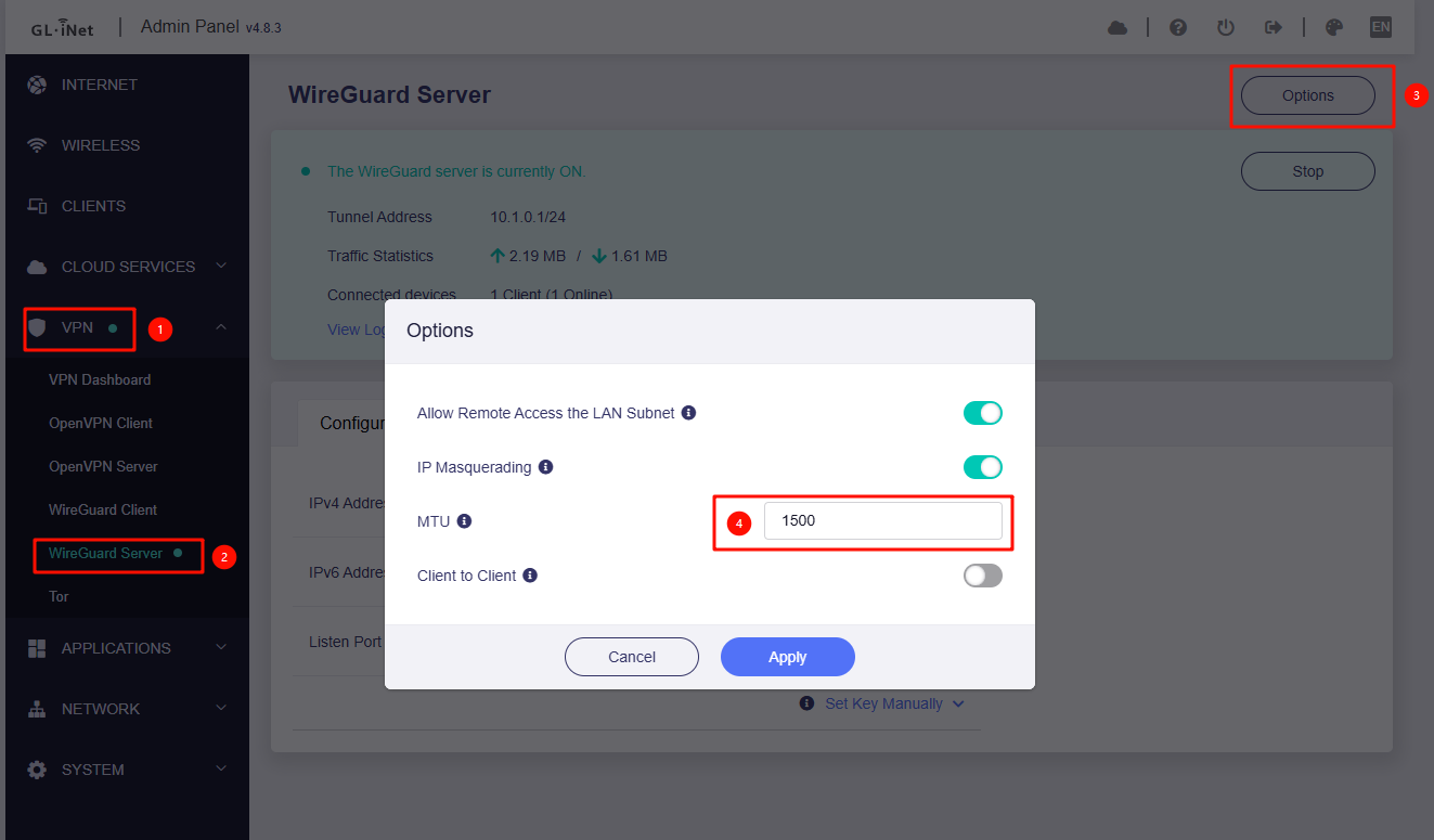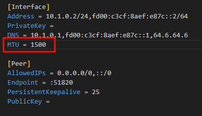 and then update the exported WireGuard profile by setting the MTU value to 1500