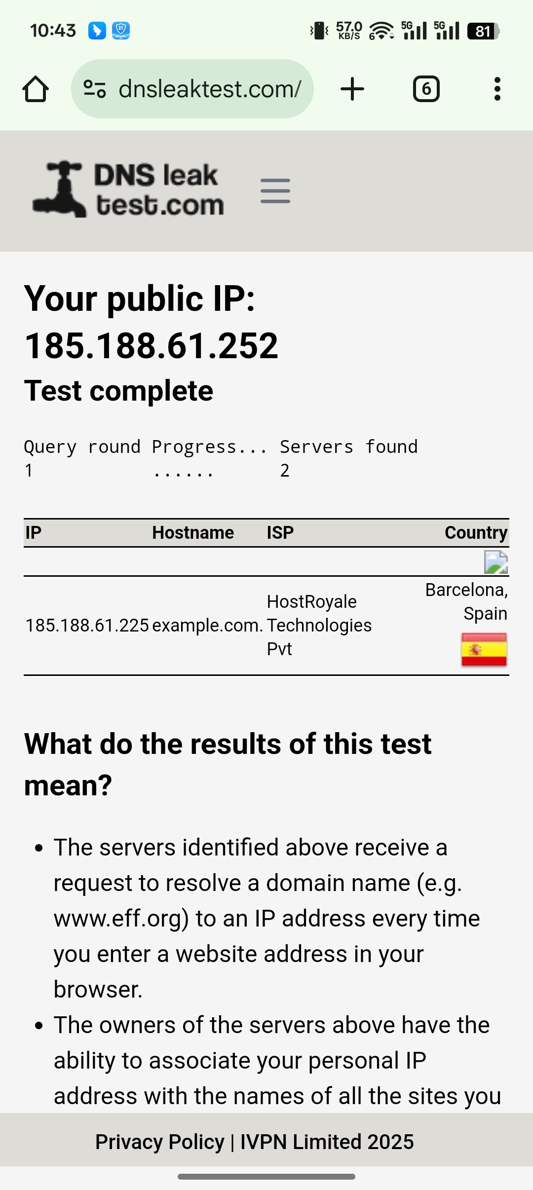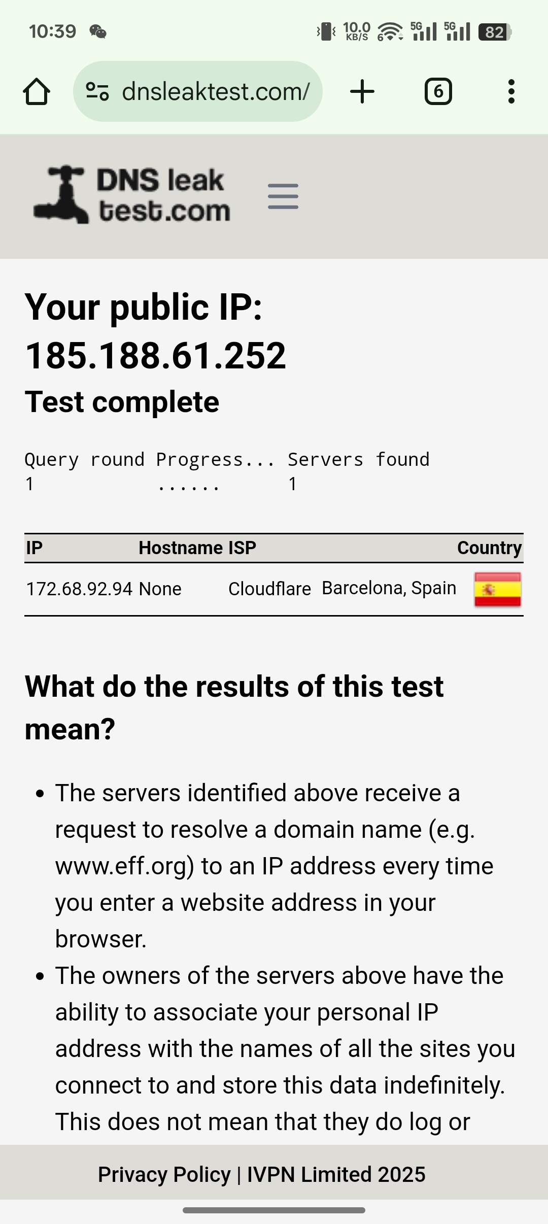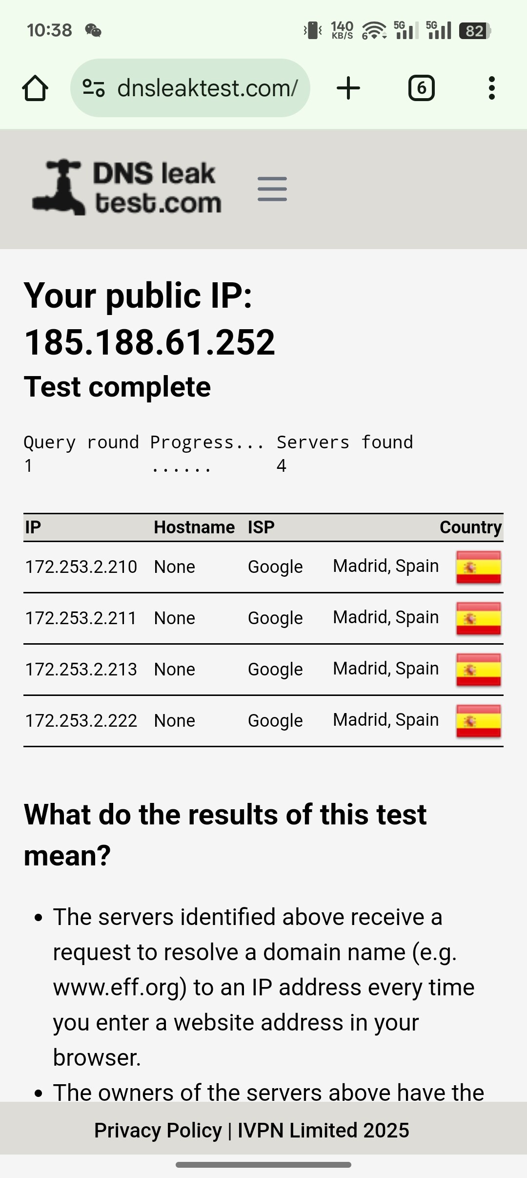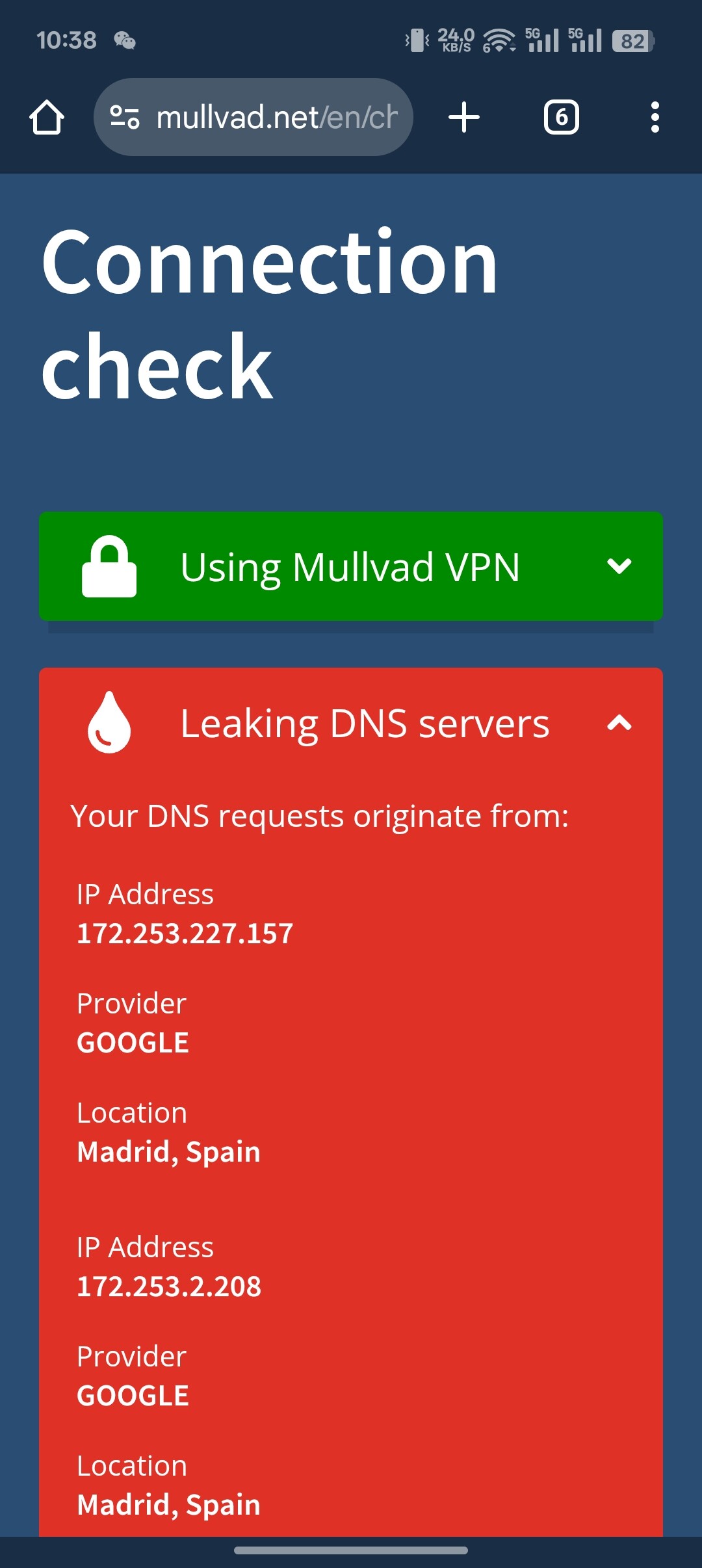 And this was not DNS leaked, but was DNS hijacked or followed profile DNS.