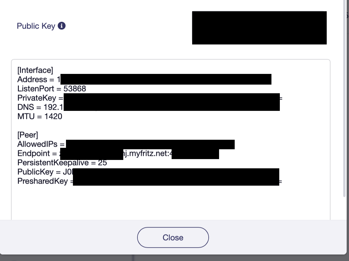Attached a screenshot of my config if this helps anyone. I blacked out most of it maybe I am too paranoid but all that info was essentially spat out by my Fritzbox except for the endpoint. That was not generated at all.