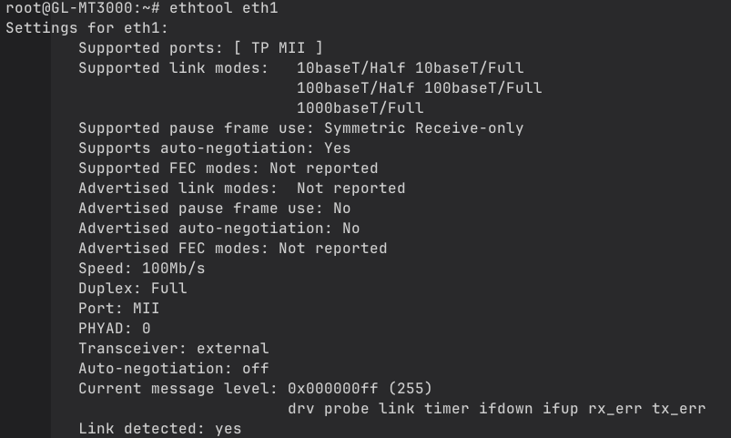 I went through many posts describing the same issues, as this one for the Flint 2, Flint2 Ports issue . Linking with 100 mbps . , tried forcing negotiation speed via ssh with ethtool. Still nothing.