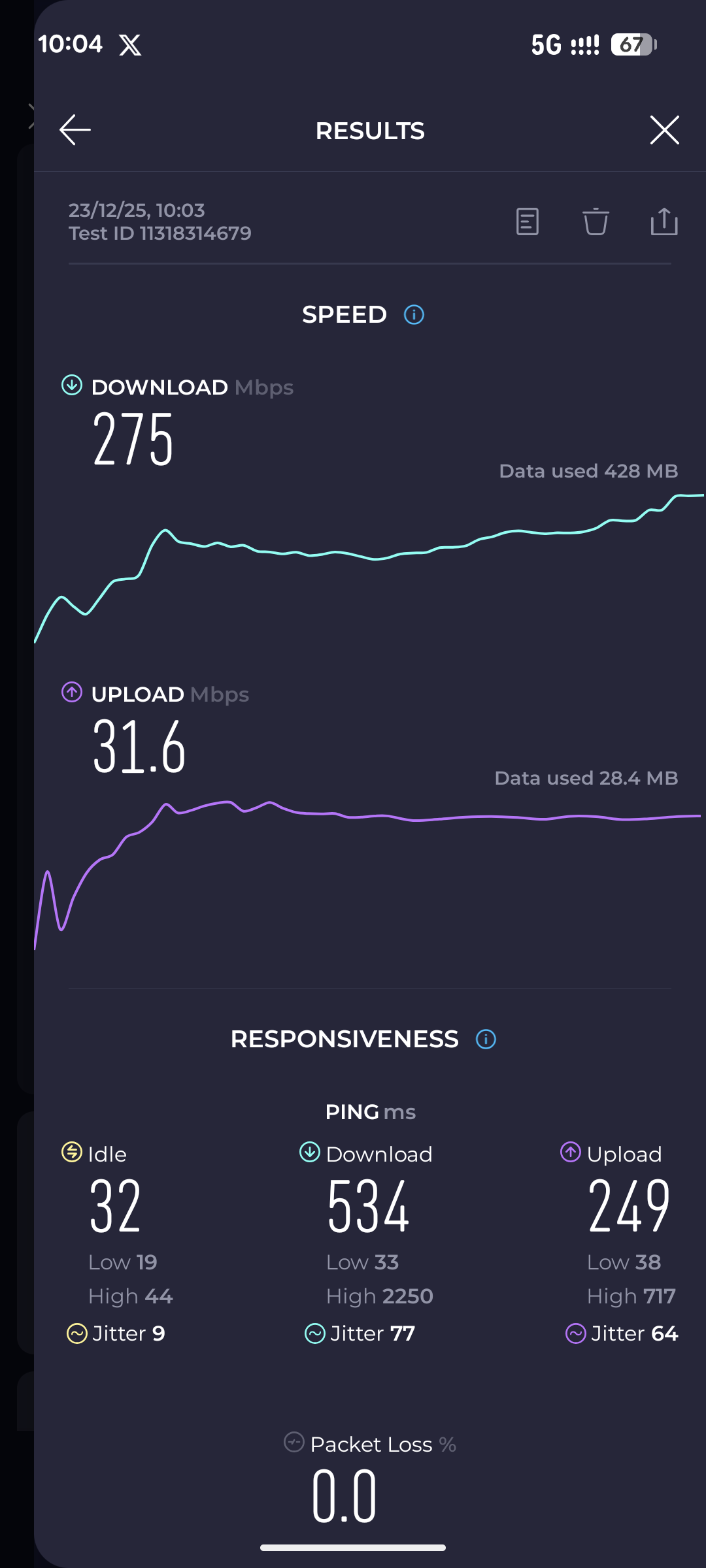 The upload on this connection is still ~5Mbps but as this is low it doesn't reveal anything.