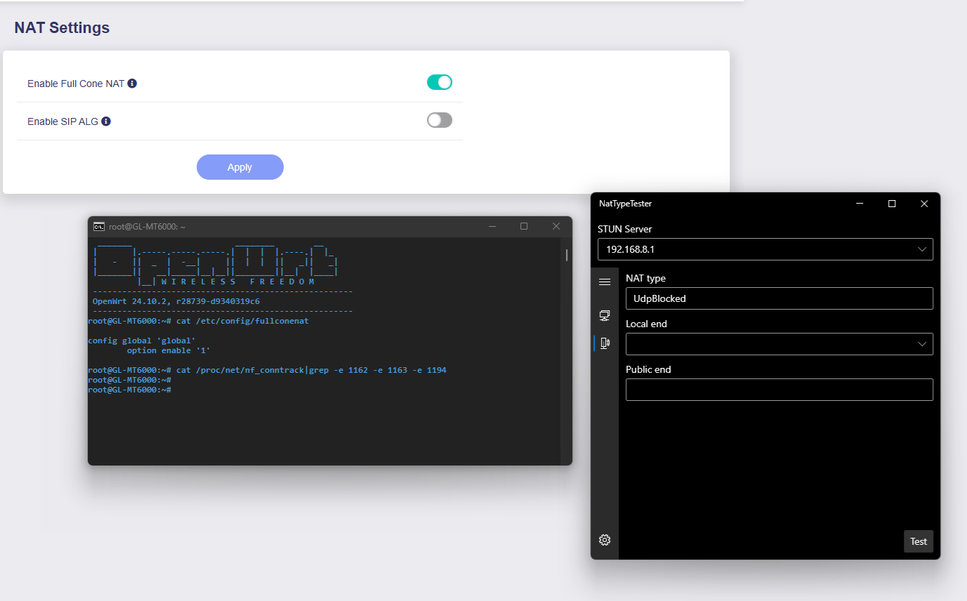 On the GL-MT6000, Full Cone NAT works perfectly after I enable the option in the GUI.