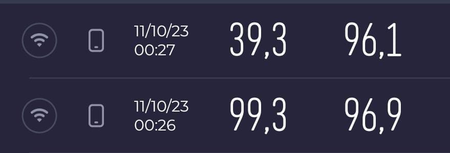 The two tests were carried out on the GL-AX1800’s 5G with the repeater as the main internet.
