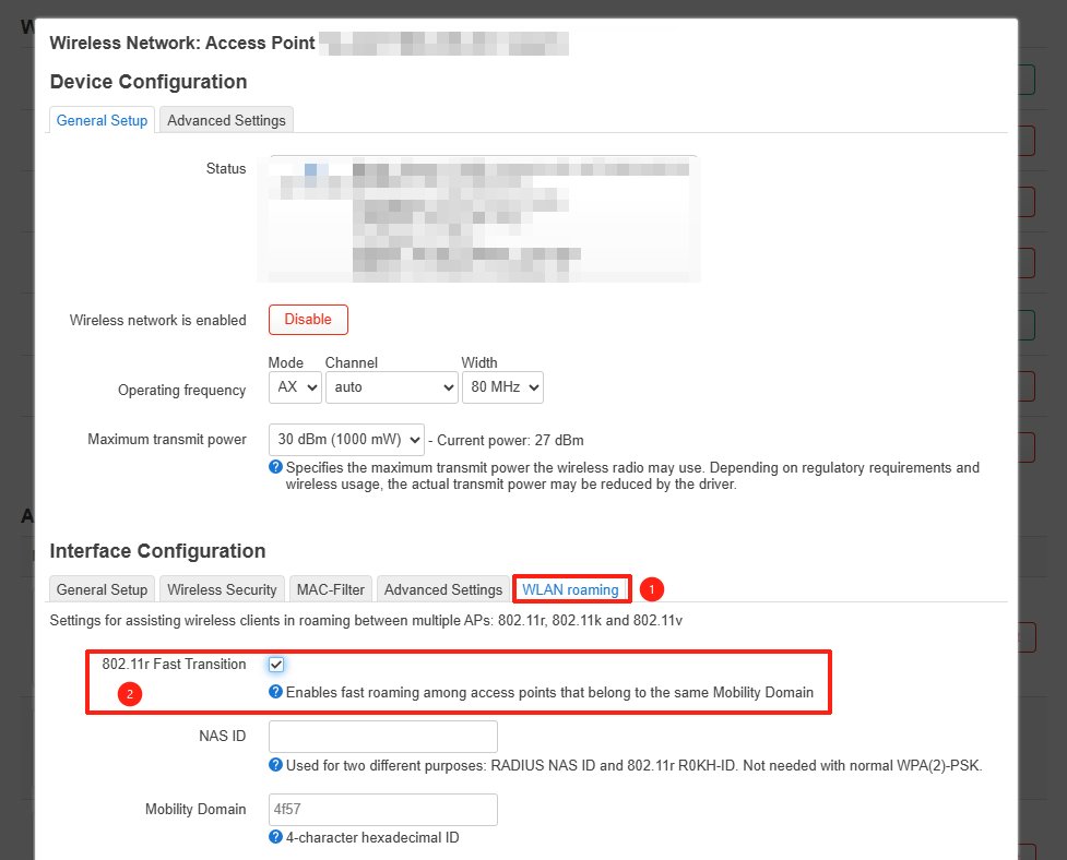 Optimize for Seamless Roaming: For a seamless roaming experience, you should configure all three routers with the same SSID and ensure 802.11k/v/r is enabled. By default, 802.11k/v are usually active and provide a good roaming experience. However, if you encounter issues, you can manually enable 802.11r Fast Transition: