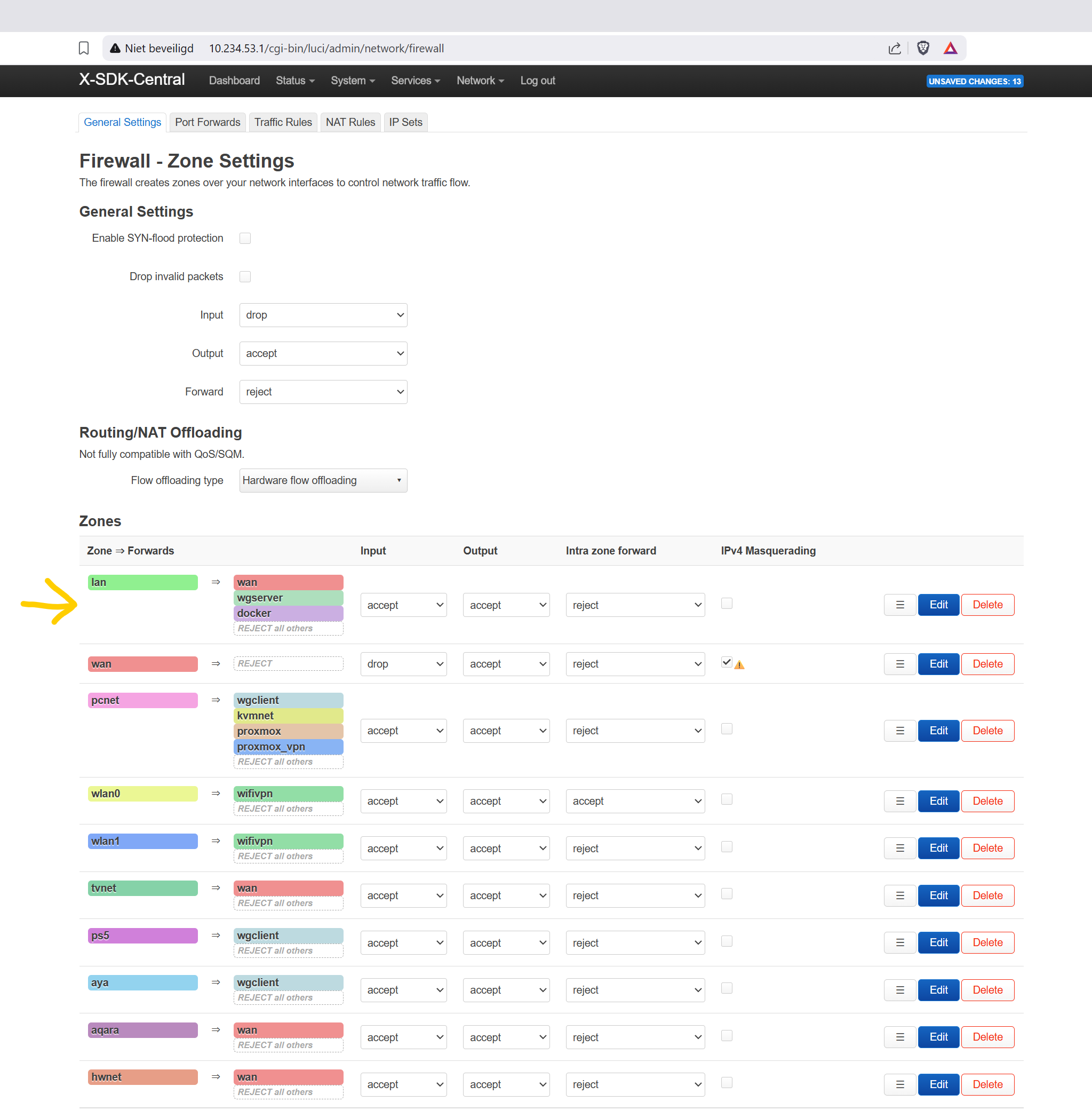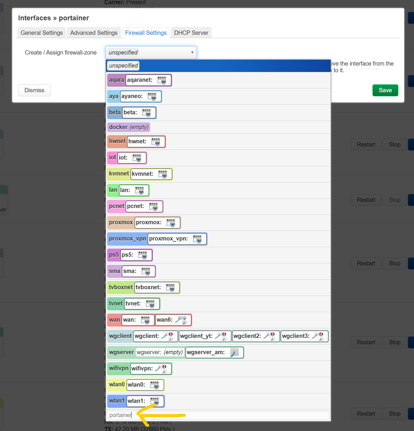 and click on save, you also want on docker zone itself that it points to wan like this: