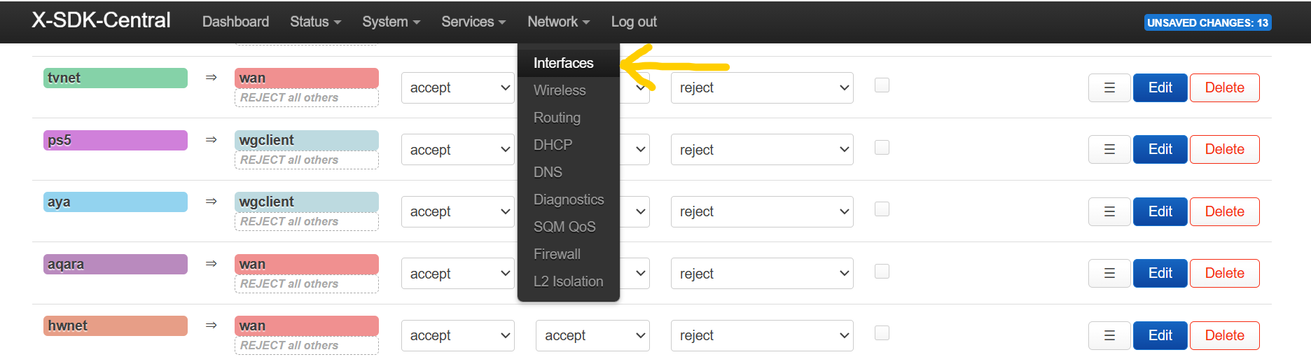 Navigate to network -> firewall.
