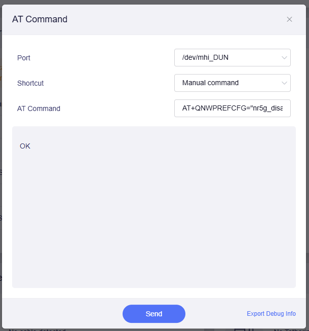 The exact command is as follows: AT+QNWPREFCFG="nr5g_disable_mode",1