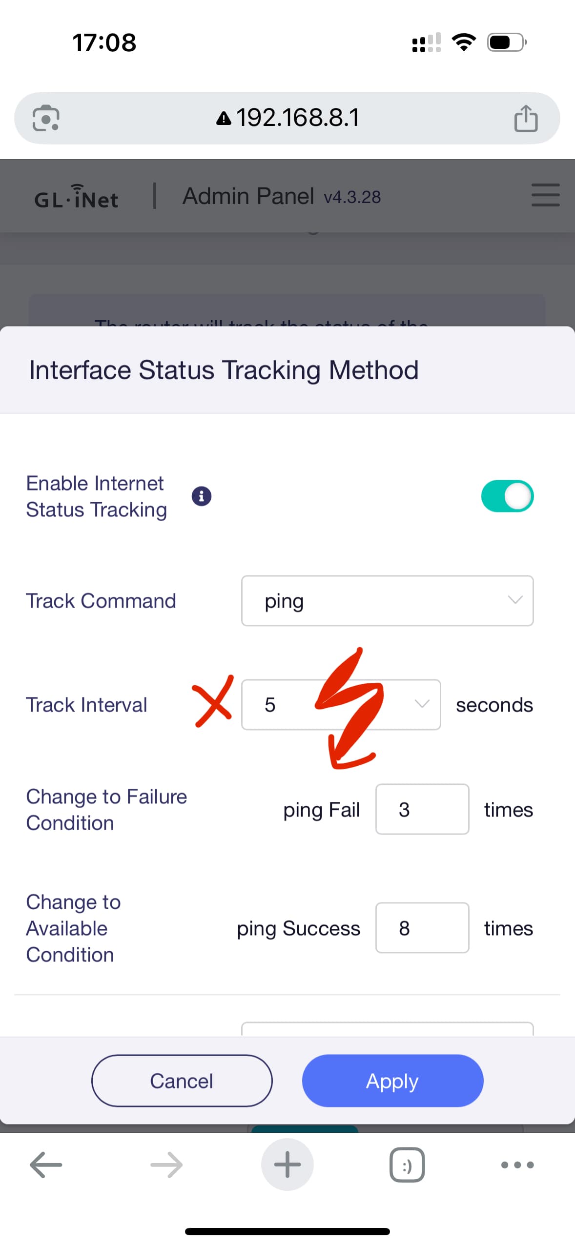 I noticed some strange behavior: at first, everything works fine, but after a few hours (anywhere from 2 to 12), my GL.iNet router disconnects and can’t reconnect to the internet. The error message says: “The interface is connected, but the Internet can't be accessed.”