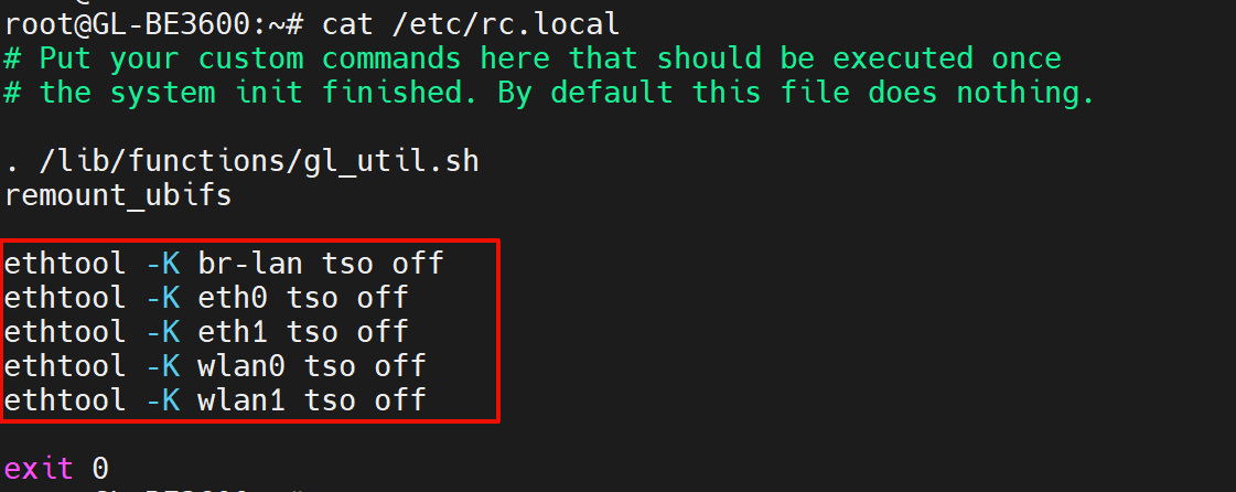 If the issue is resolved, you can make this persistent by adding the same commands to /etc/rc.localbeforeexit 0, then rebooting the router to confirm the setting is applied after startup.