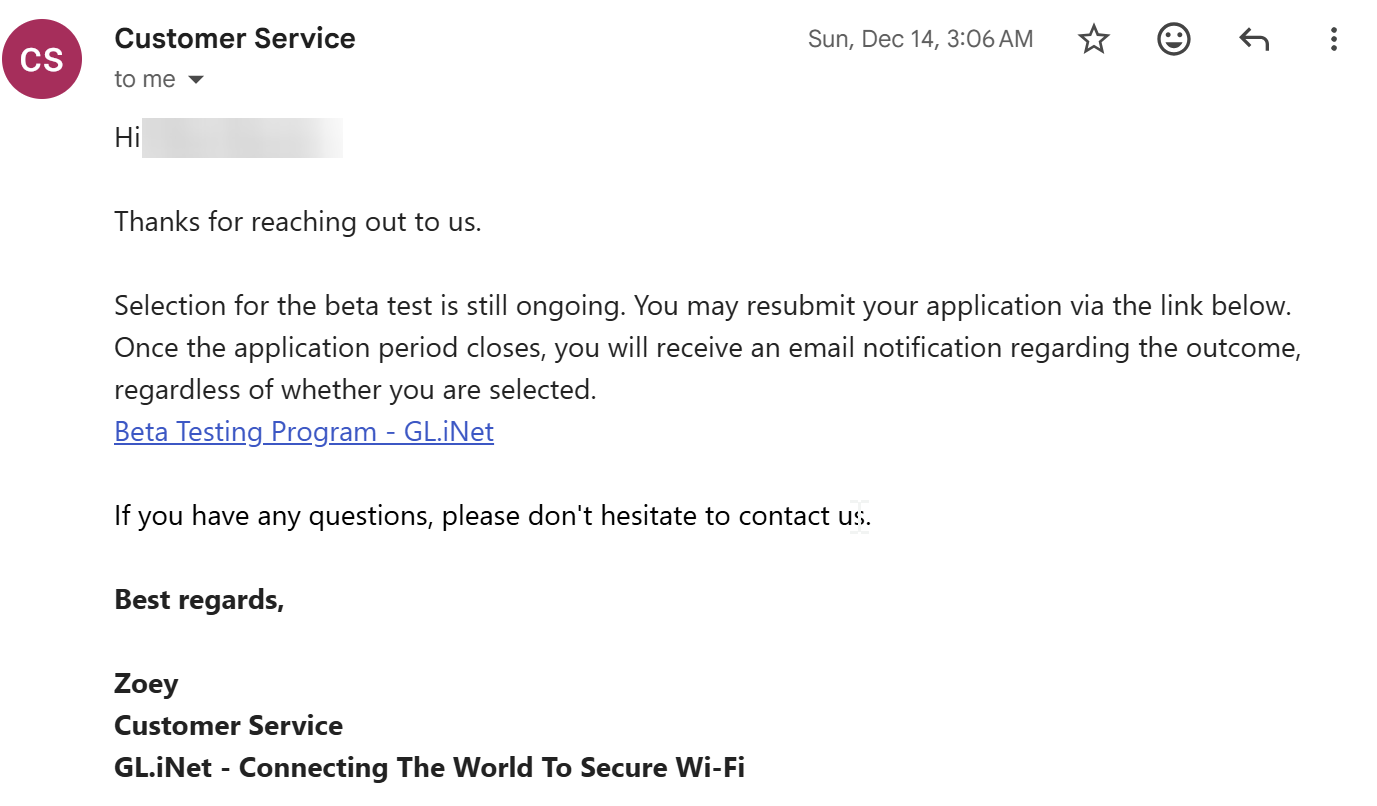 If you are successfully selected, you will receive an email; if you are not selected, will not email, sorry.