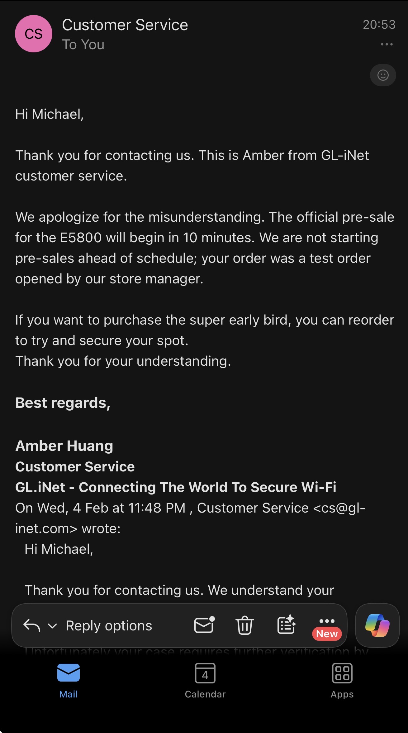 I am glad I read this email and did not hesitate! I guess I’ll see what they are going to do with that “test” order.