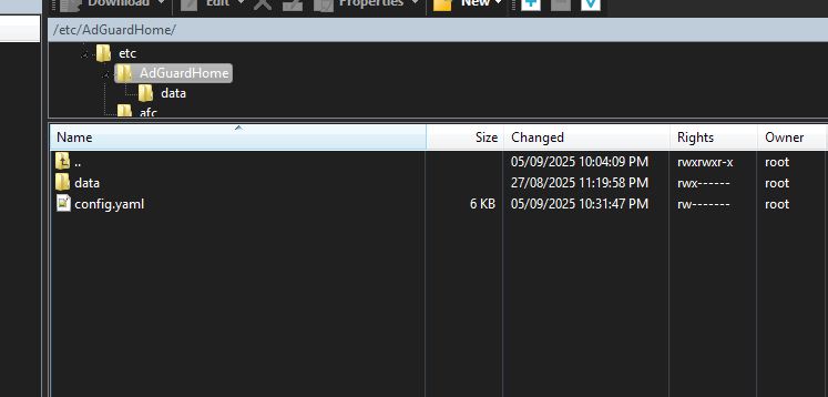 Anyway, I used WinSCP to replace the AdGuard Home files (the files that are usually backed up had disappeared!). Then, and this was the important part, remove the config.yaml file from the device (/etc/AdGuardHome), start the service via the GUI and run through the initial OOTB set up. Once itās working, turn off the service again and copy the original config.yaml file back across to the device. Start the service up once more and it was now working as normal.