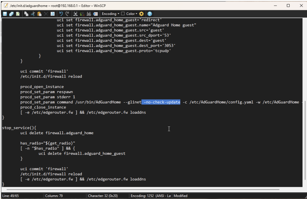Again, you just need to remove a piece of config from the /etc/init.d/adguardhome file.