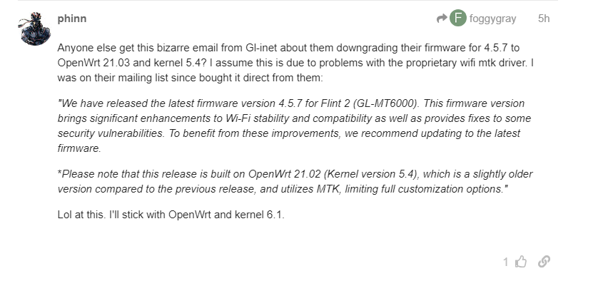 There’s not much incentive to update when functionality is abandoned, GL-inet starts to remind of Microsoft where updating is a sure receipt for trouble