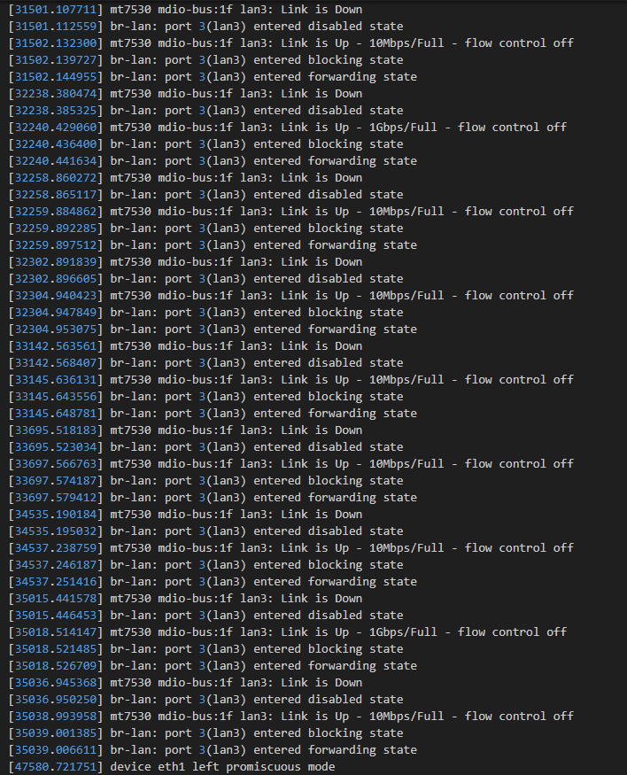 and the LAN3 port speed is fluctuating between 1 Gbps and 10 Mbps.