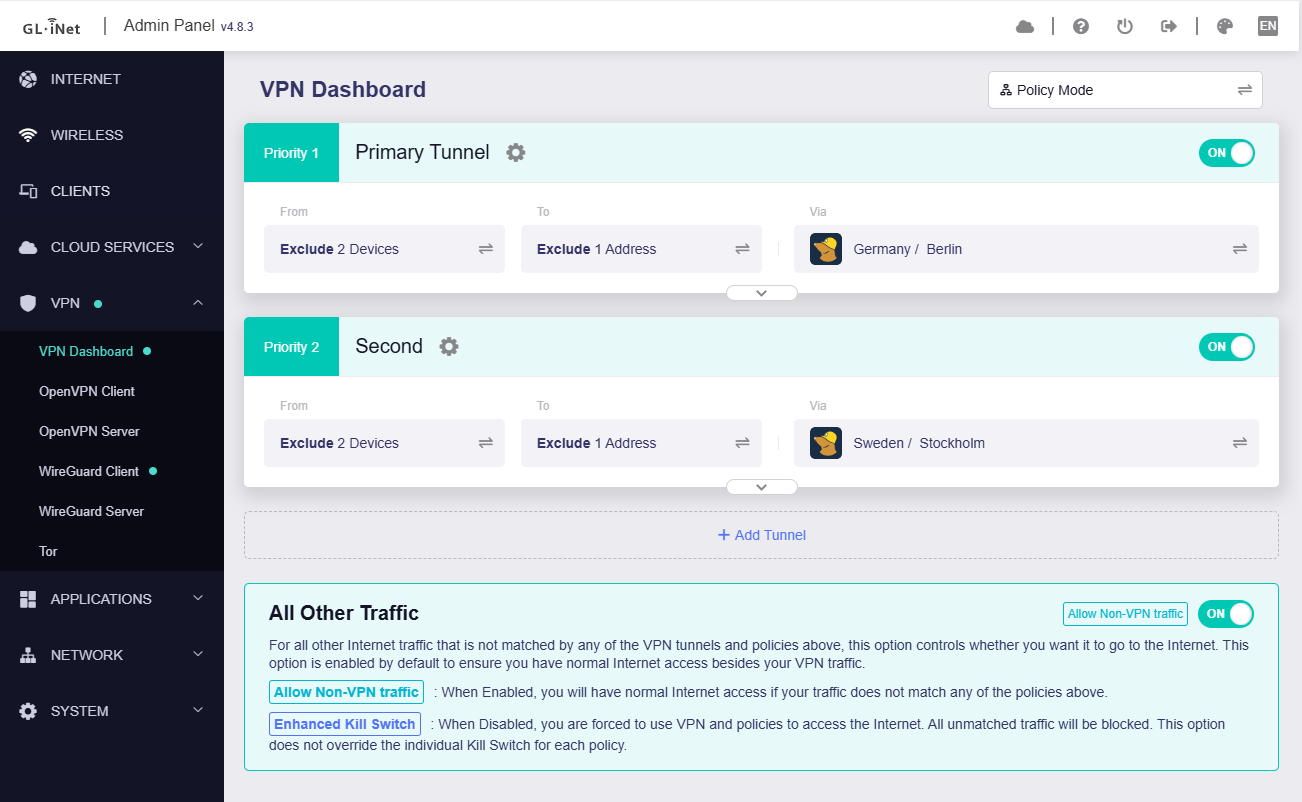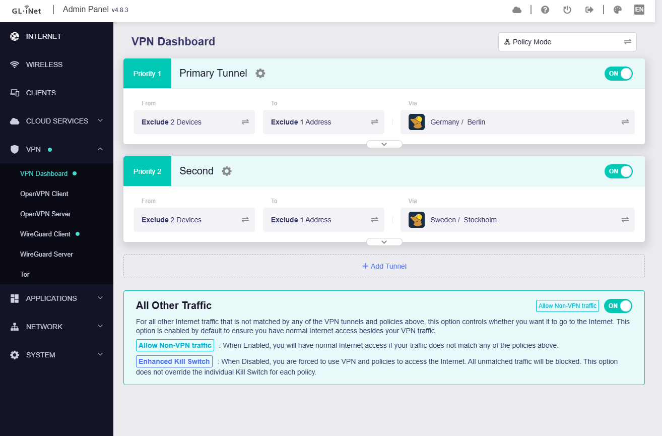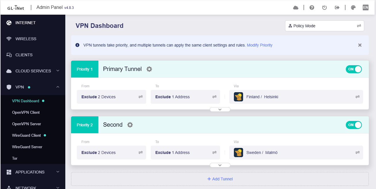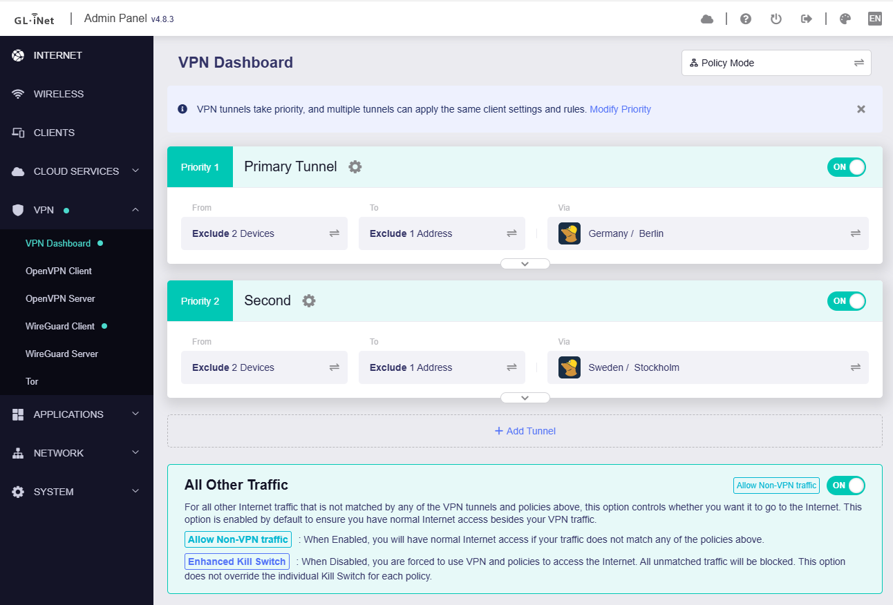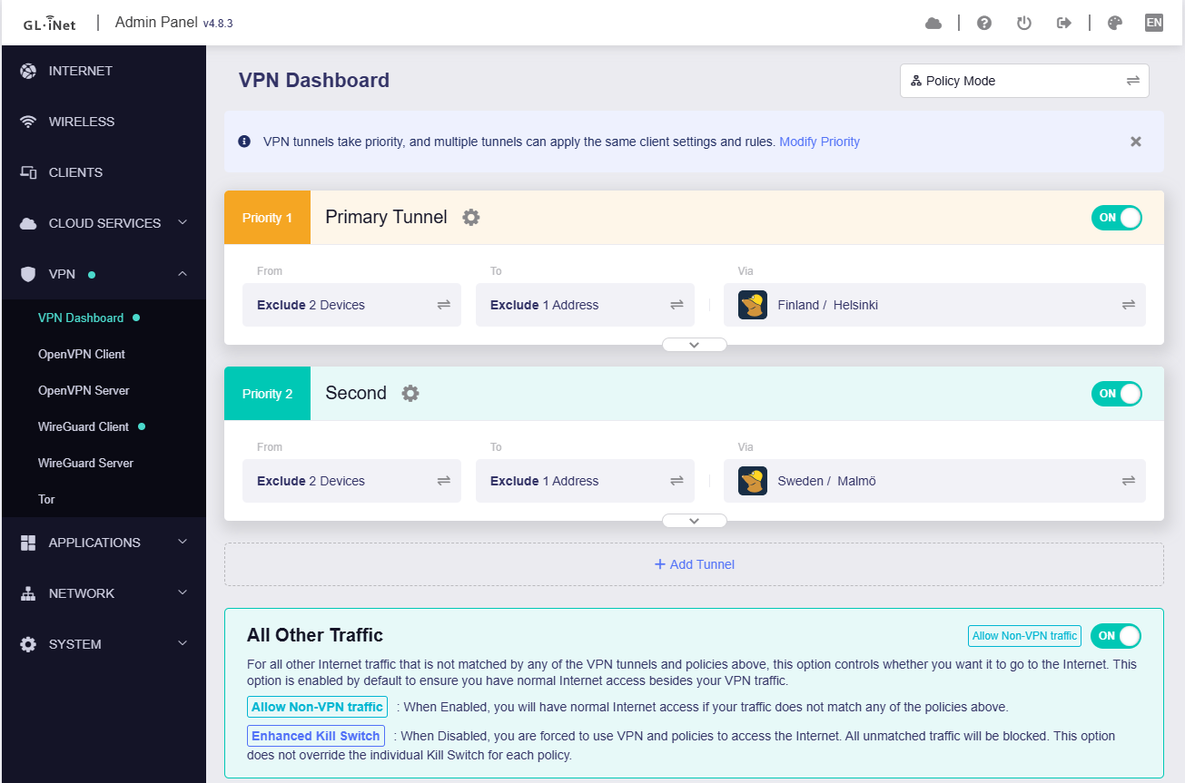 I have the following tunnels enabled:
