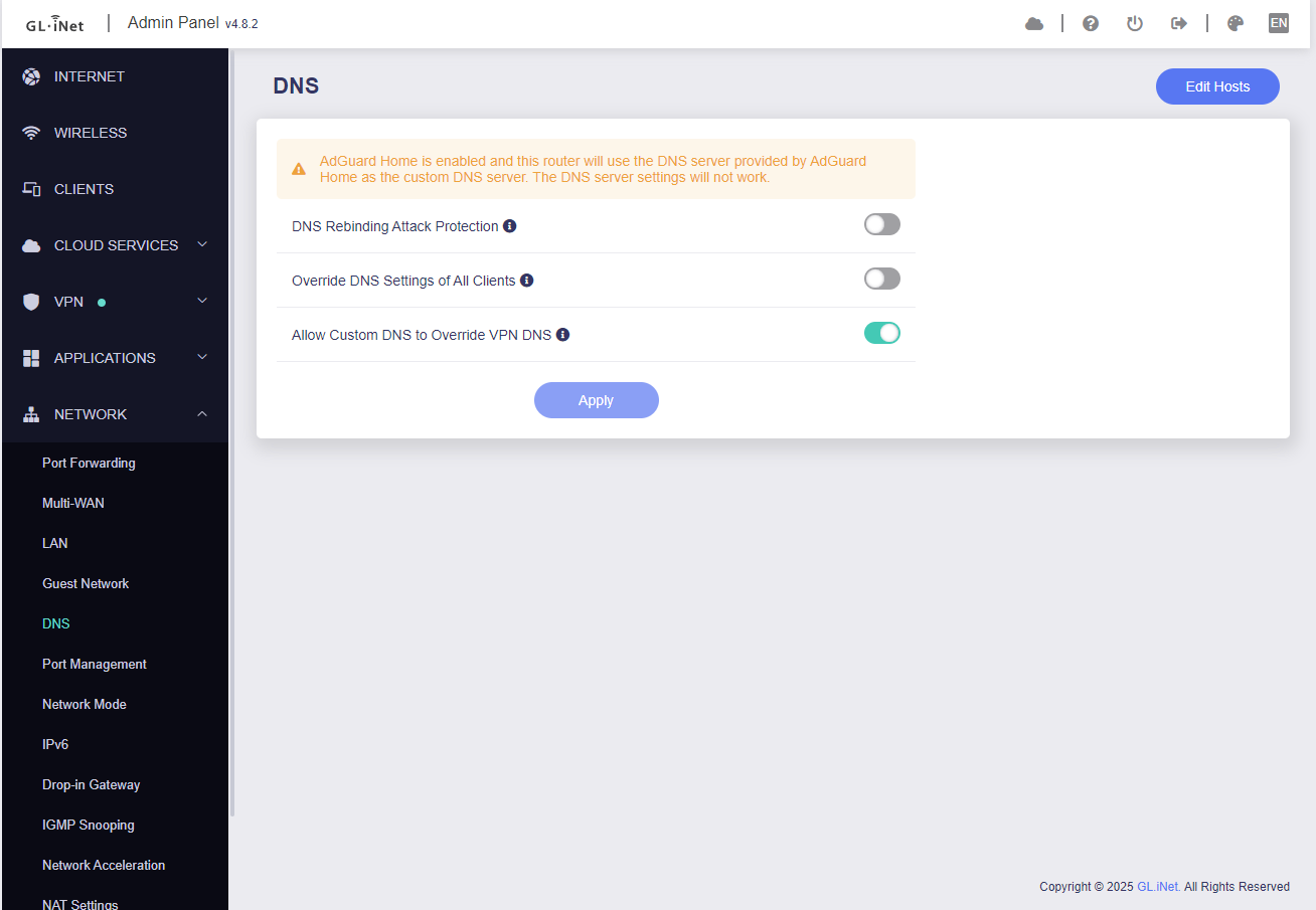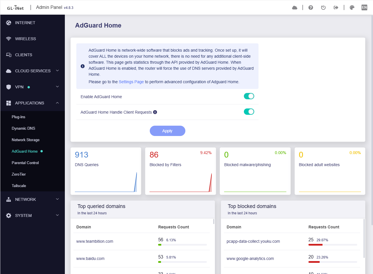 AdGuard Home Handle Client Requests enabled