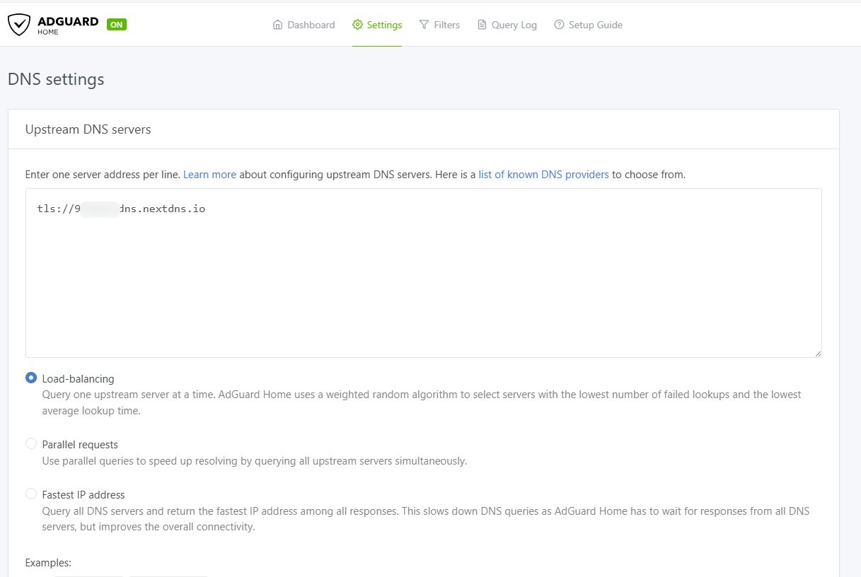 ADG Upstream DNS servers is DoT with NextDNS
