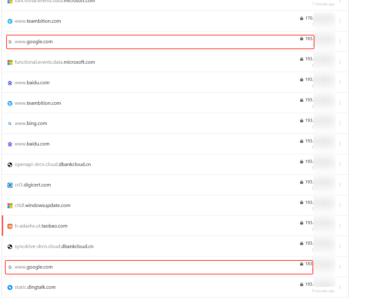 During the test period, there are 2 DNS requests google.com