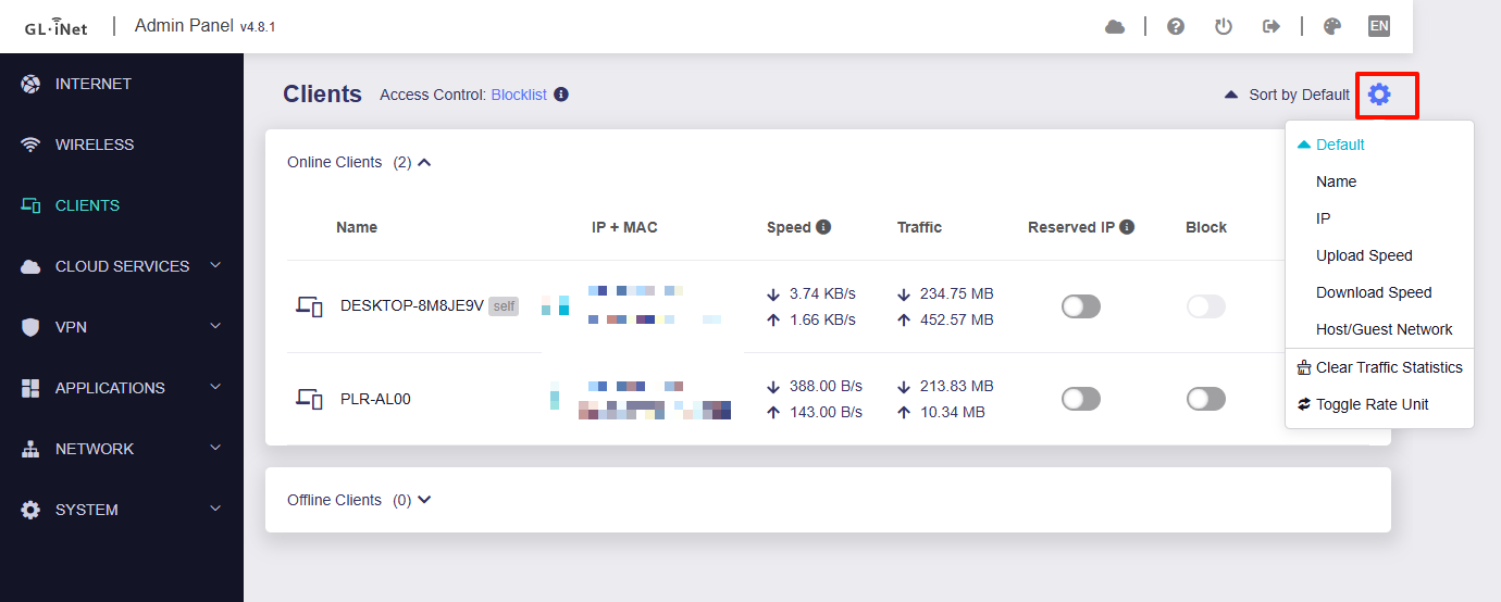 If so, this feature is currently available and allows you to sort by name, IP address, upload/download speed, etc.