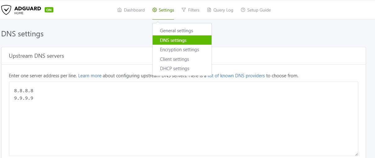 If step 1 is done properly, please enable the ADG, and go to setting page > Settings > DNS settings, change other available DNS servers, like https://unfiltered.adguard-dns.com/dns-query, and "test upsteams" before clicking "apply".