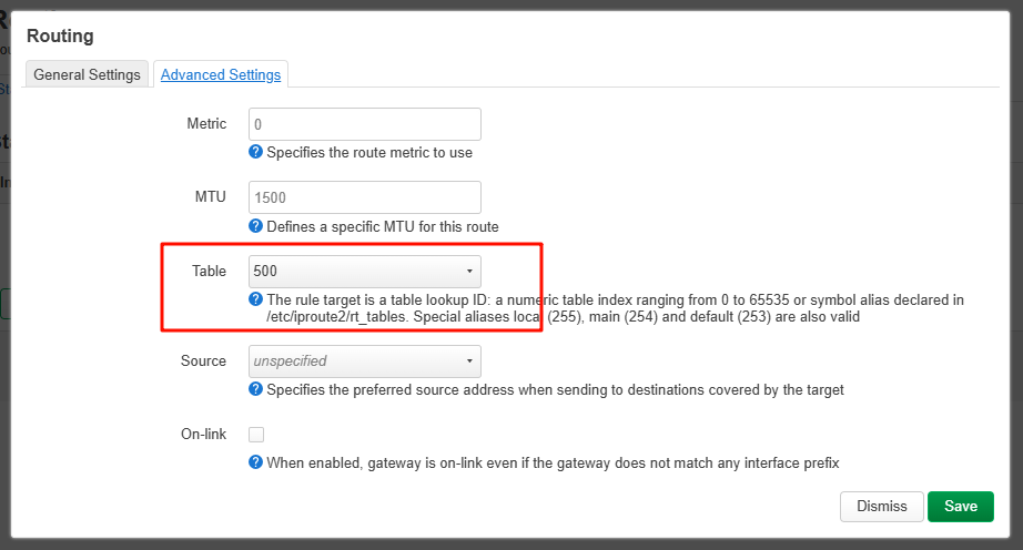 ip route add 8.8.8.8 via 192.168.1.2 dev eth1.2 tabl 500