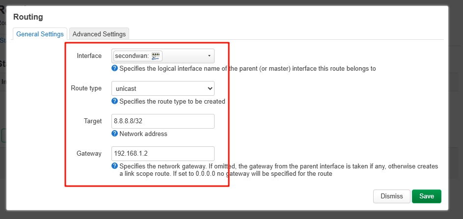 I have 1 lan host (192.168.0.10) that I want to be able to ping 1 internet host (8.8.8.8) using my backup wan connection. That traffic should never traverse the primary internet connection. My backup WAN connection is 192.168.1.2 with a gateway of 192.168.1.1.