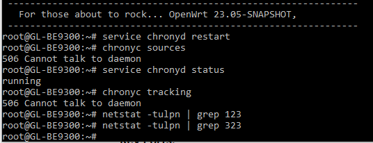 Chrony appears to be broken on the Flint 3. Noticed that my time was WAY off and initially went down the NTP rabbit hold until I was told that is was replaced by CHRONY in this build. Well, it appears that chrony is acting up as the chronyc command can’t talk to the daemon. Is this expected behavior?