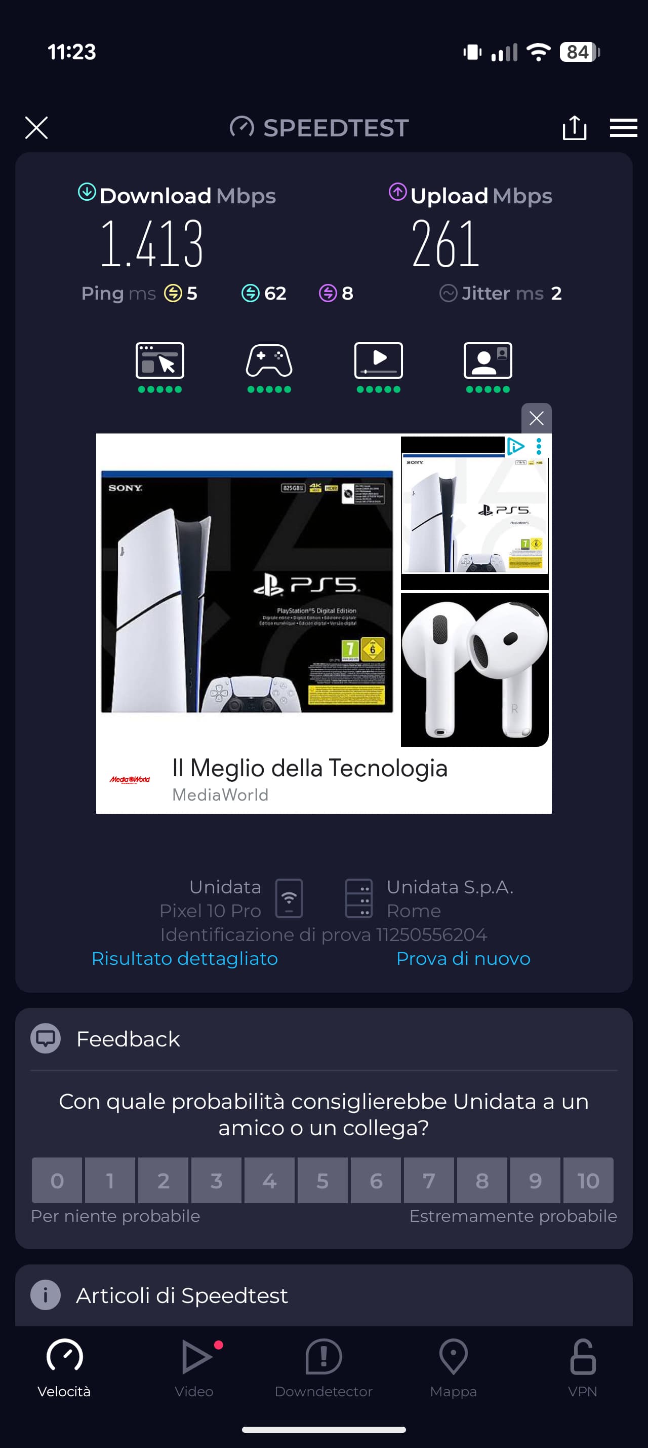 Please try running a speed test over Wi-Fi and let us know the results.
