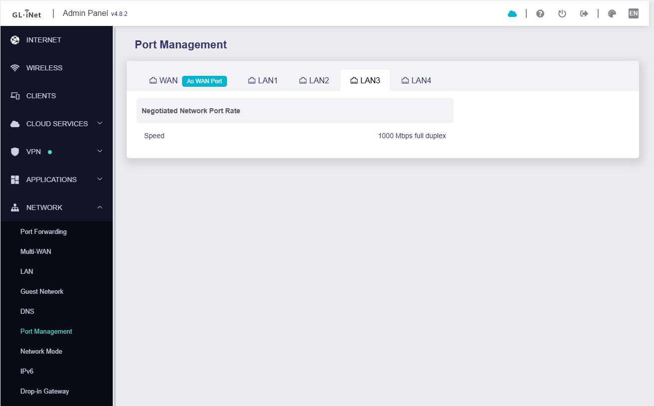 For example if my cable in is the port labeled LAN1 how do I see that in the GUI? either the GL iNet GUI or Luci?