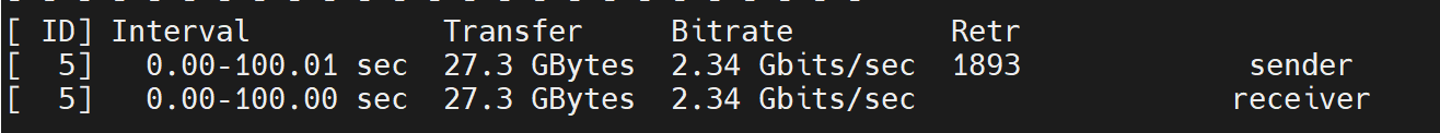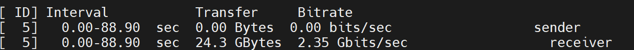 [SUM] 0.00-10.00 sec 1.89 GBytes 1.62 Gbits/sec receiver