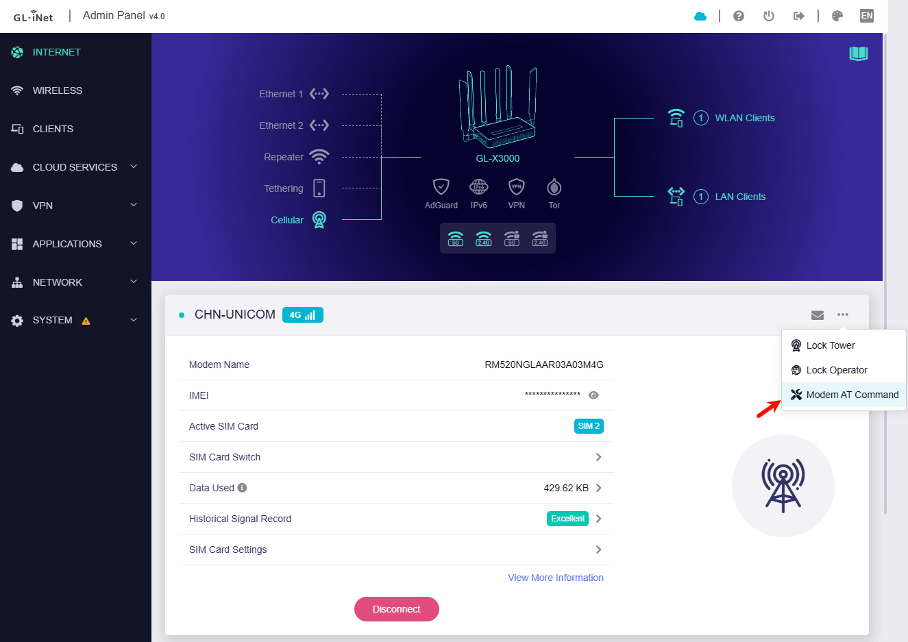 If issue persists, please go to Modem AT Command page to export the debug info and PM me the message.