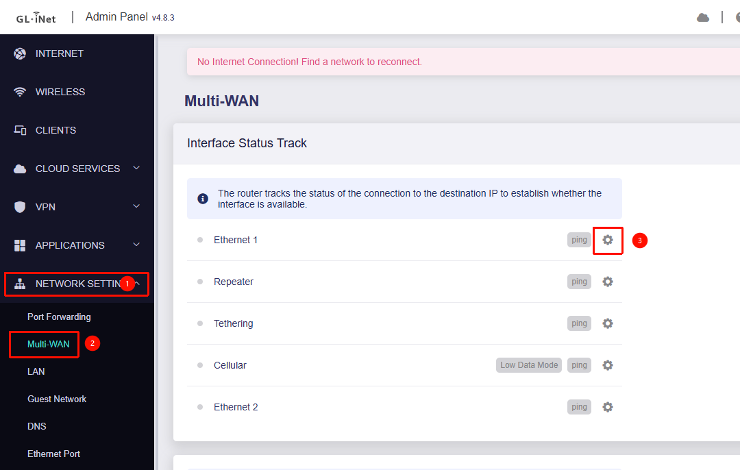 Please try going to Admin Panel -> Network -> Multi-WAN and disable the interface status tracking for Ethernet1 to see if this resolves the issue for you.