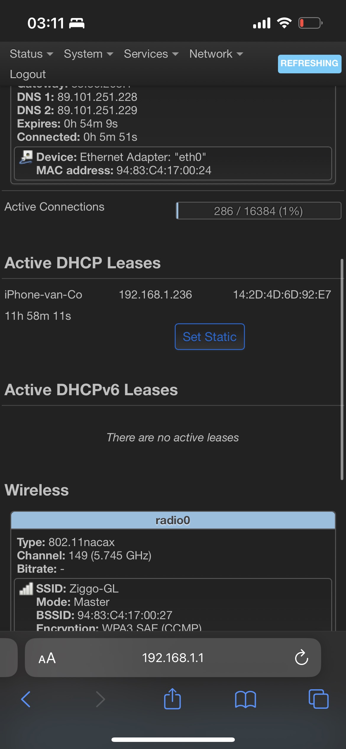 When in the GL router panel, in the clients section, it will show some strange results. IP addresses assigned starting from 192.168.0.1, instead of 192.168.1.1. (See photo’s below).
