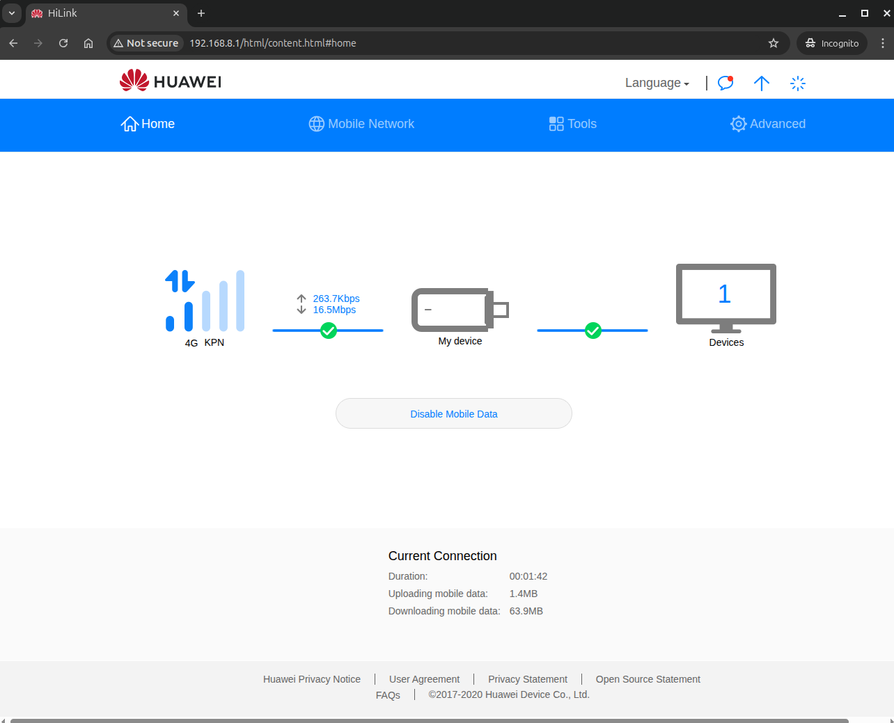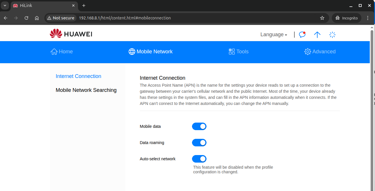 I'm trying to get the Huawei E3372h-320 to work with my AXT1800