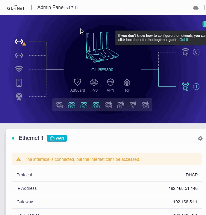 I purchased the GL-BE9300 on release and found it a good router. But after updating the Bios I was not able to access after a reboot so look about but found no info so I had to factory reset to gain access . Then waited for a later version Bios thinking it might be a bug but still the same so left it until this latest BIOS v4.8.3 but still the same after upgrade no access so have to factory reset so maybe im missing something, if anyone could help with this would be great