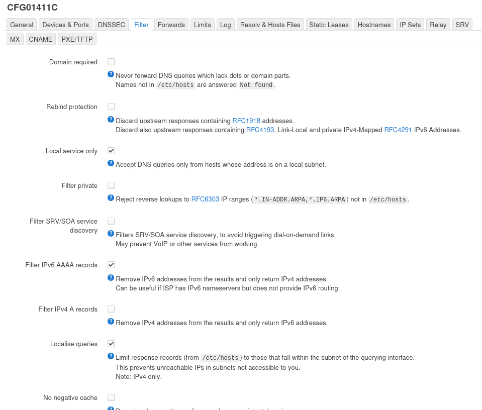 - Domain required, so DNS queries without dots or domain parts are forwarded to the upstream DNS server.