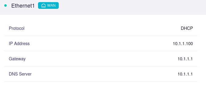 The router gets a DHCP address and upstream DNS server from the WAN port