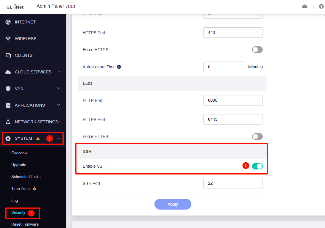Please verify its status in GL UI → System → Security.