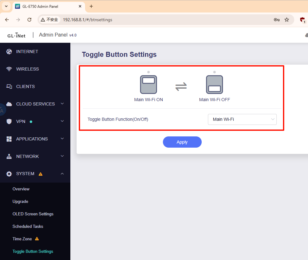 Currently the toggle switch toggles the VPN but it will be nice to have the switch turn the wifi on and off instead of VPN for using it with wired devices only.